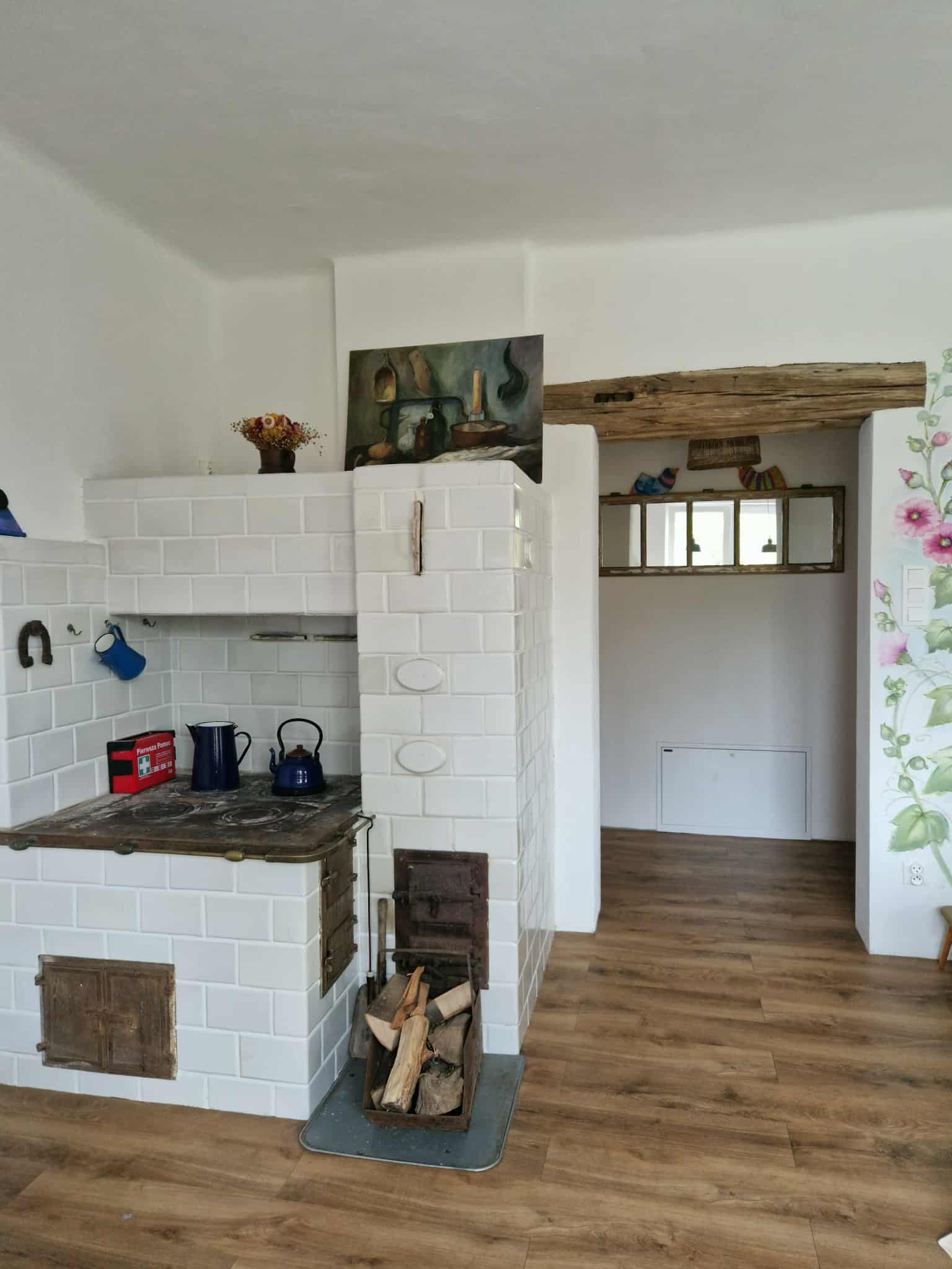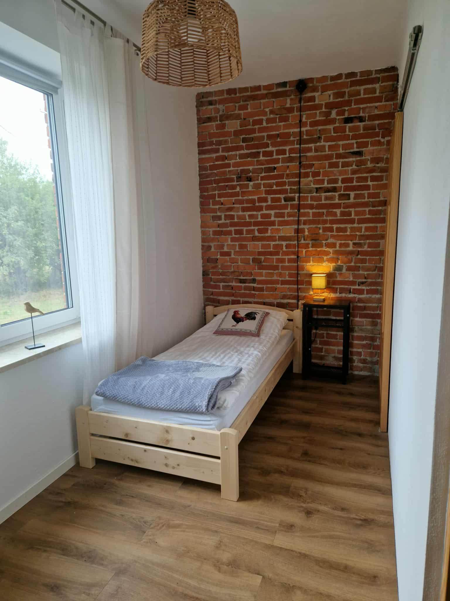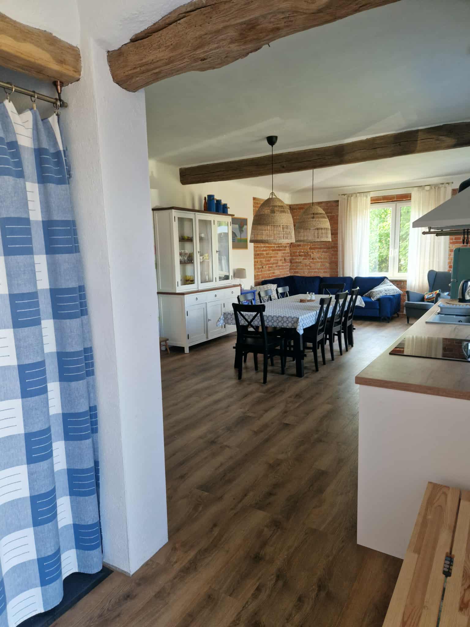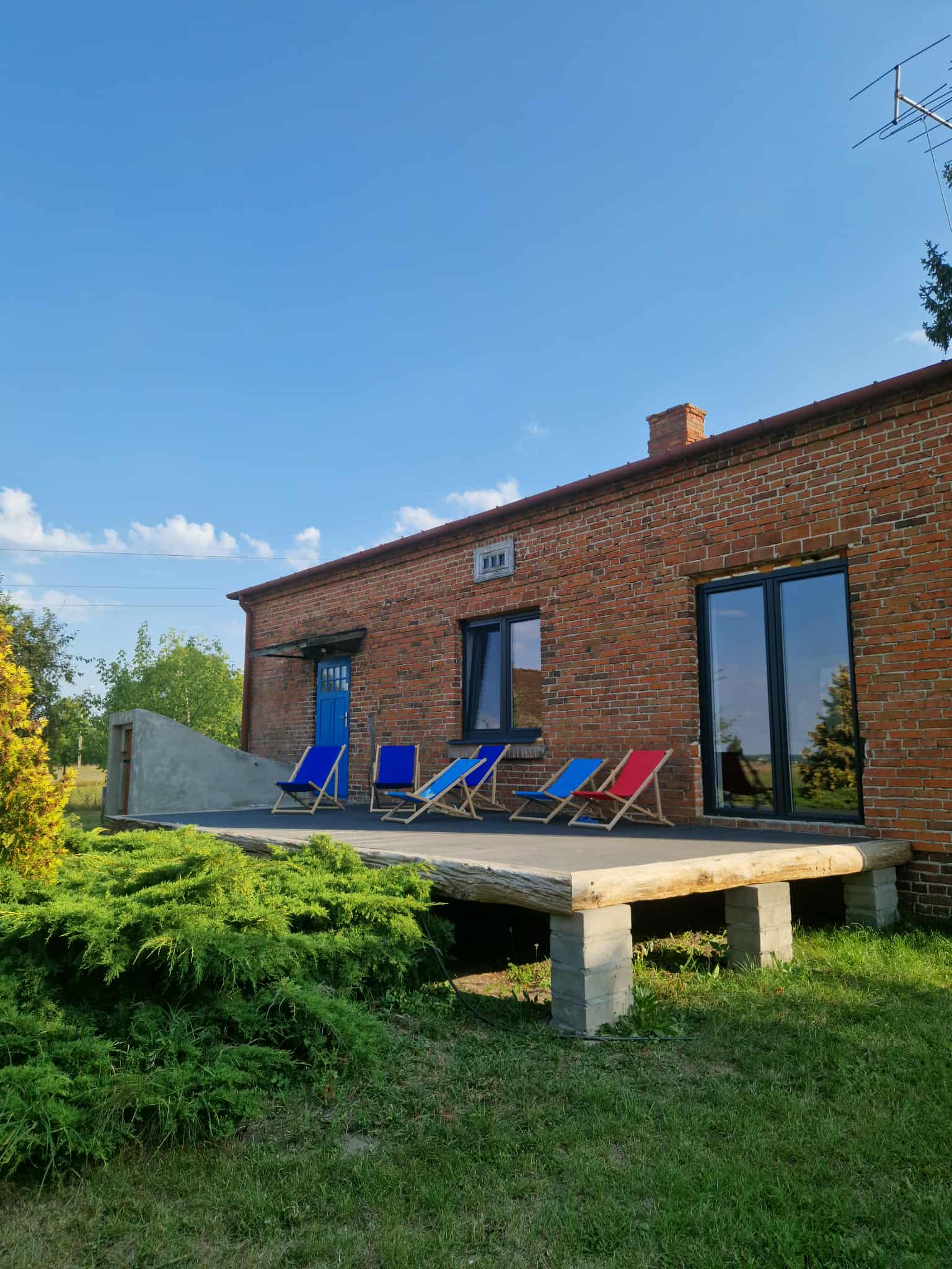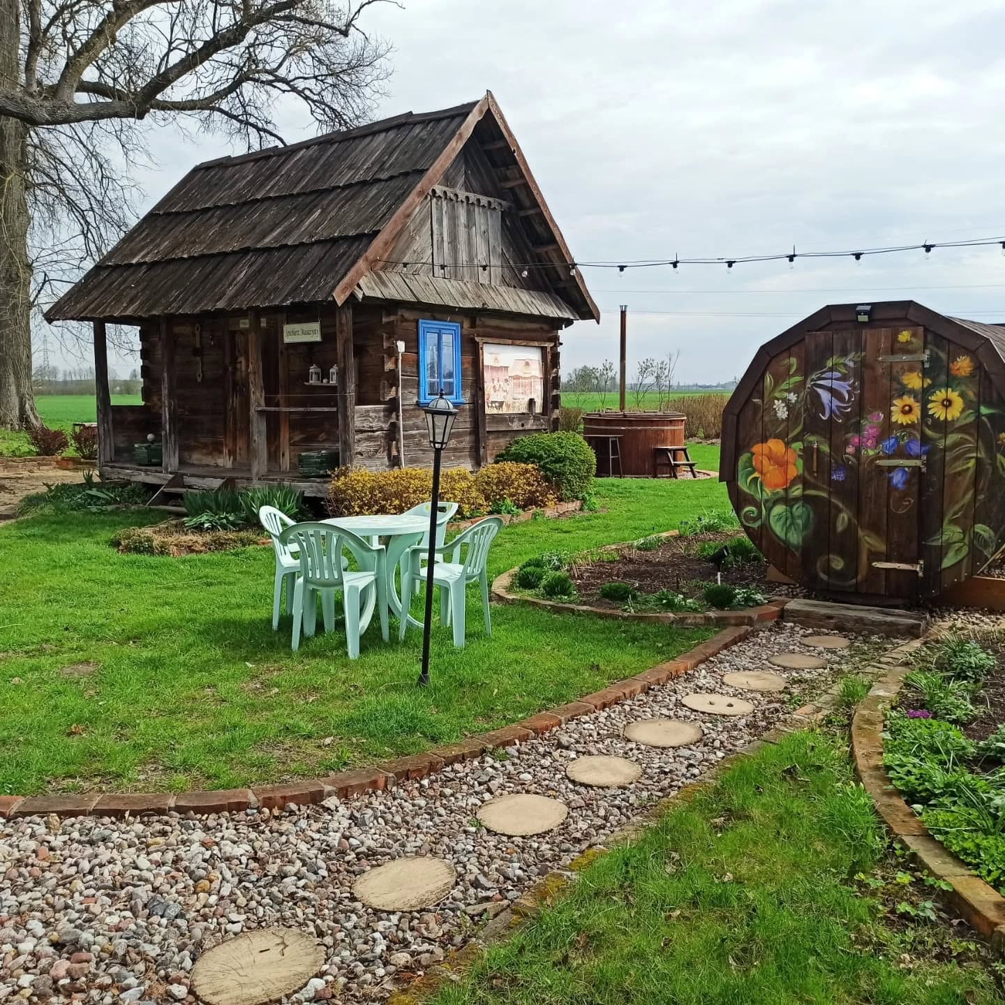 Na obszernym, drewnianym tarasie z widokiem na bezkresne poleskie pola można wypocząć z książką na leżaku, delektować się porannym śniadaniem, a wieczorami podziwiać gwiazdy w strefie ciemnego nieba, szczególnie w sierpniu podczas spadających perseidów. Wyjątkową atmosferę salonu tworzy zachowany, oryginalny kaflowy piec chlebowy – świadectwo dawnych tradycji wiejskiego domu. Ściany zdobią obrazy przedstawiające Hołowno, namalowane podczas pleneru malarskiego, który odbył się kilka lat temu w Krainie Rumianku. Dzięki temu wnętrze nabiera ciepła i lokalnego charakteru. Agroturystyka Rumiłkowo szczególnie ceni sobie najmłodszych gości. Dla nich przygotowano w pełni wyposażoną zabawkową kuchnię, hobby horsa oraz dwie półki z grami planszowymi, puzzlami i zabawkami. Do dyspozycji gości jest także badminton z siatką oraz miejsce na ognisko. Dodatkowo można korzystać z bogatej oferty warsztatowej Ośrodka Edukacji Regionalnej oraz Wiejskiego SPA, z którym sąsiadujemy przez miedzę. To ważne zwłaszcza w deszczowe dni, kiedy wypady do pobliskich atrakcji czy odpoczynek na świeżym powietrzu są utrudnione.